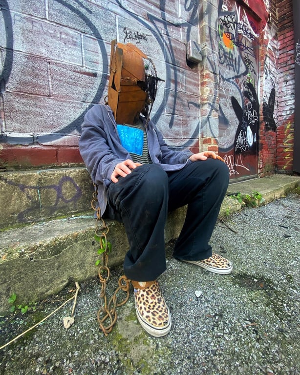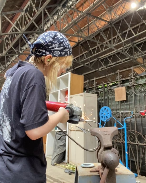 To create the text, I designed a laser-cut stencil on adhesive paper, applied it to the rusted metal, and sandblasted the surface to reveal the words. I absolutely loved every step of the process.