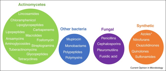 In general, antibiotics come from four main sources: Actinomycetes (soil bacteria), other bacteria, fungi, and synthetic compounds, with the ones coming from Actinomycetes clinically dominating. Hutchings explains that governments are trying to find different ways to tackle antibiotic resistance, and some have put their money towards creating more synthetic antibiotics, but these have not been as successful.