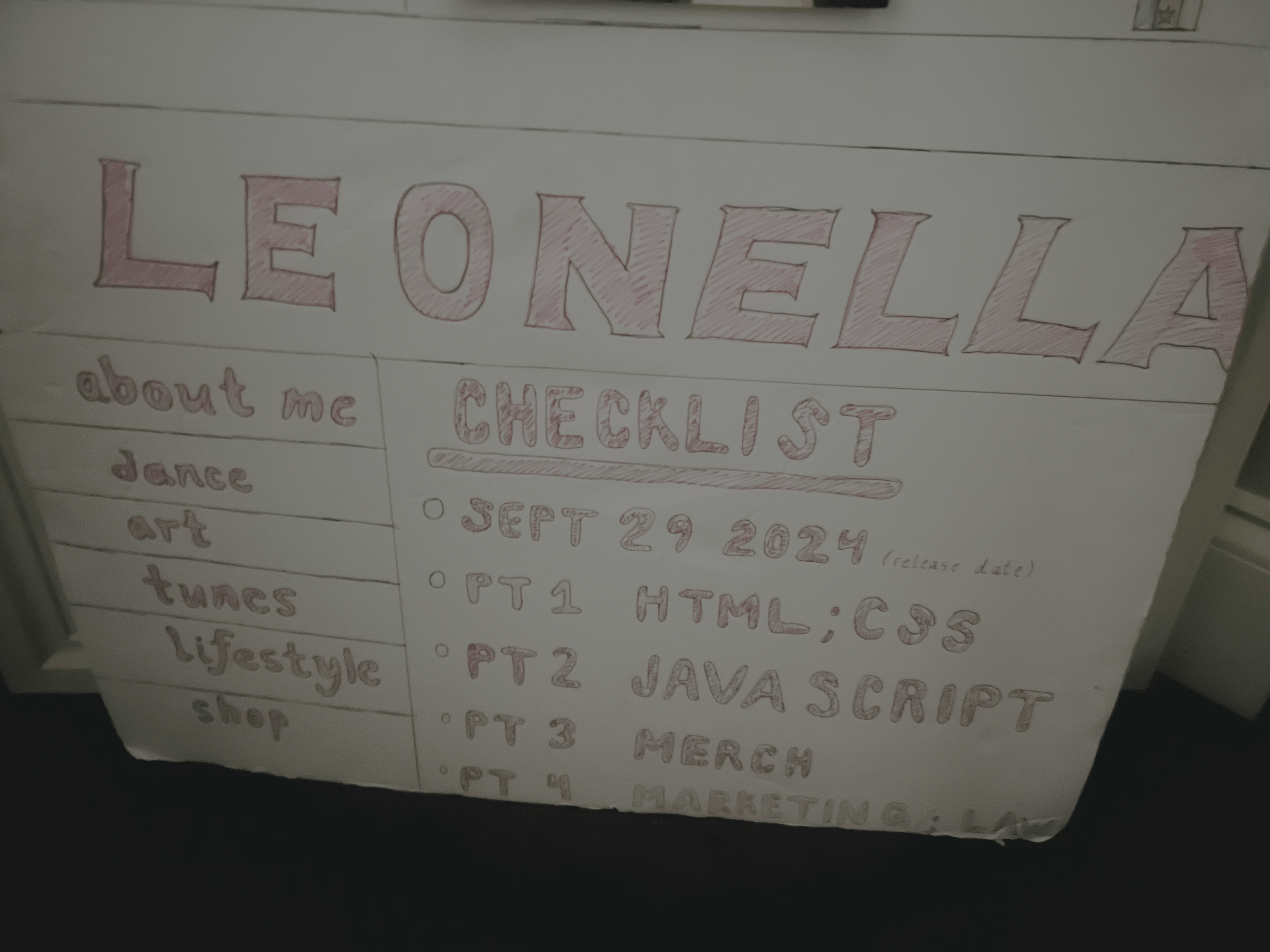 Léonella website brainstorm phase poster.